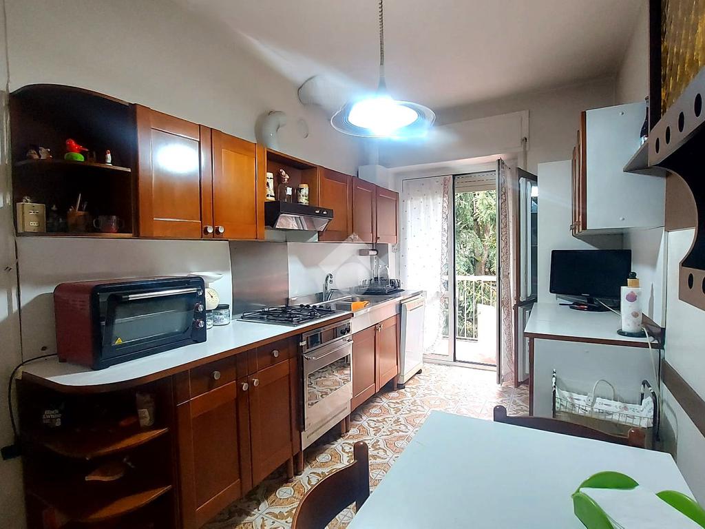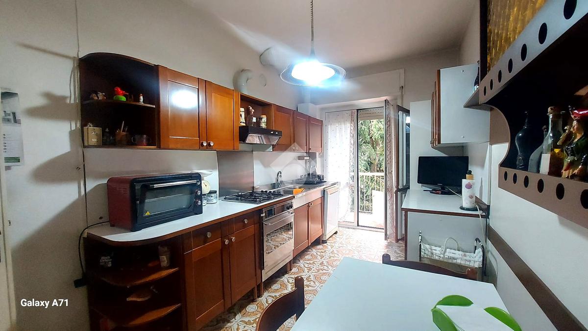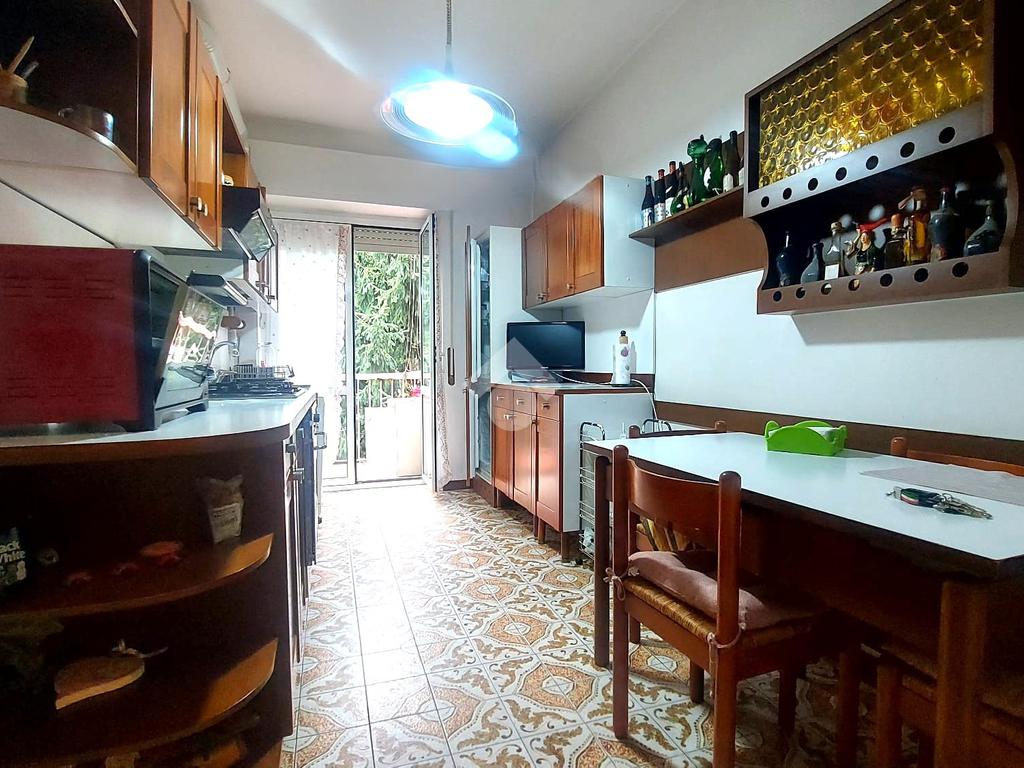 L'immobile apre sul comodo ingresso, proseguento troviamo un'accogliente zona giorno completa di balcone e una cucina abitabile con affaccio sul secondo balcone.