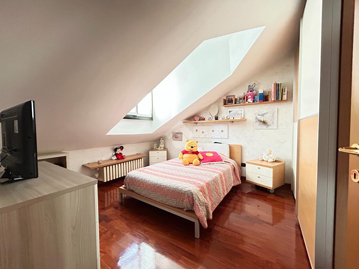Salendo le raffinate scale interne, si accede alla zona notte, completamente mansardata, caratterizzata da camere da letto di generosa metratura e da un secondo bagno elegante e funzionale.