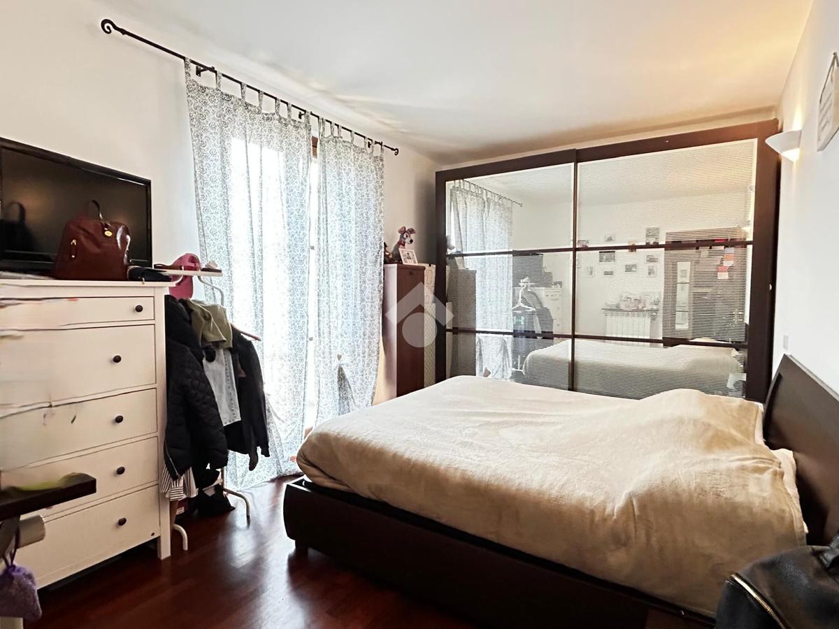 Un pratico disimpegno conduce alla zona notte, dove troviamo una camera matrimoniale di generosa metratura, servita da un secondo balcone, e un bagno finestrato con finiture moderne.