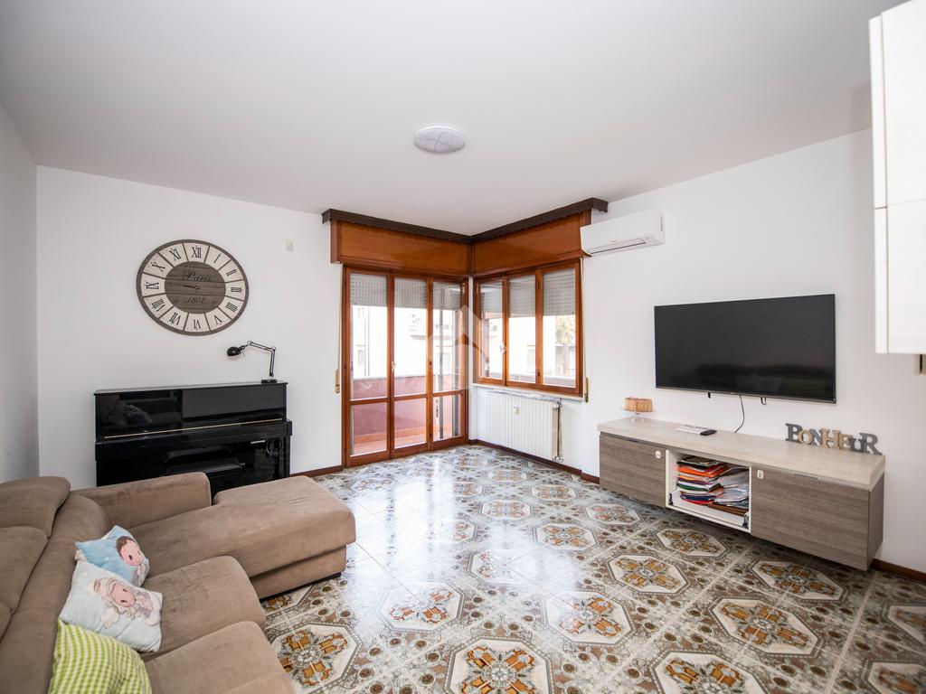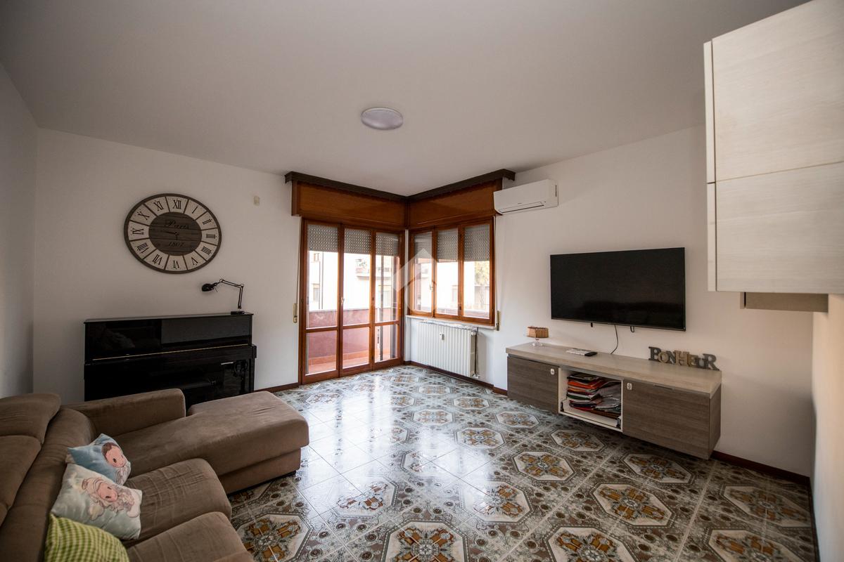 La porta apre sul comodo ingresso che da accesso a tutti gli ambienti; il soggiorno risulta molto spazioso ed è completo di primo balcone, la cucina è abitabile, anch'essa con accesso al balcone, ed è già completa di un'ampia dispensa. Proseguendo si accede al bagno padronale con vasca, al ripostiglio, alle due camere matrimoniali ognuna con accesso al proprio balcone ed infine al secondo bagno con box doccia.