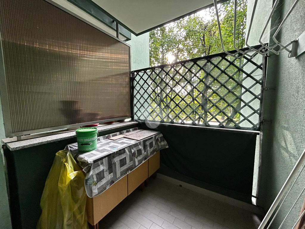 La zona giorno, spaziosa e luminosa, si apre su tre balconi che regalano affacci nel verde e garantiscono ottima luminosità durante tutto il giorno.