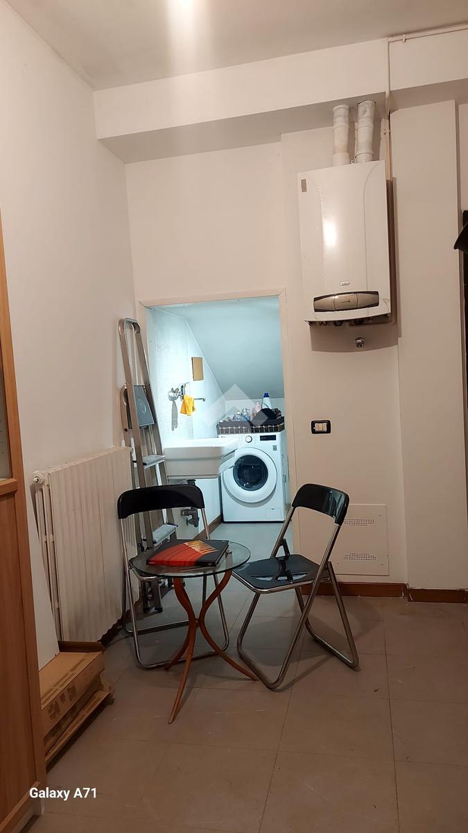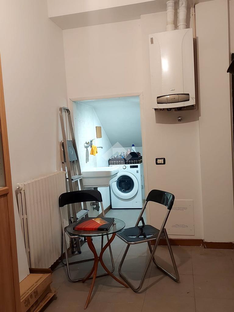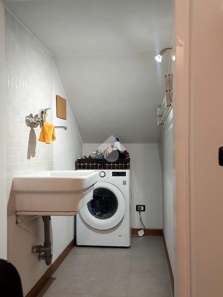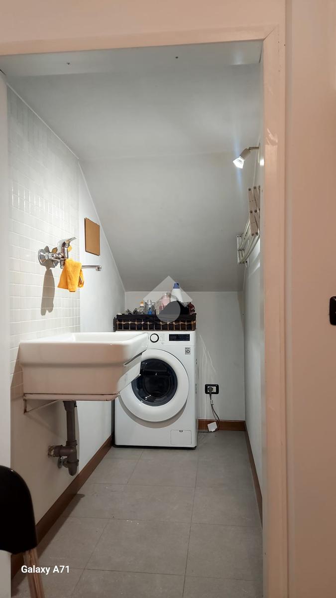 Completa la proprietà un pratico locale lavanderia, ideale come zona lavatrice/asciugatrice e dotato di lavatoio. Da qui si accede direttamente al box singolo con basculante elettrica, una comodità rara per una mansarda in posizione così centrale.