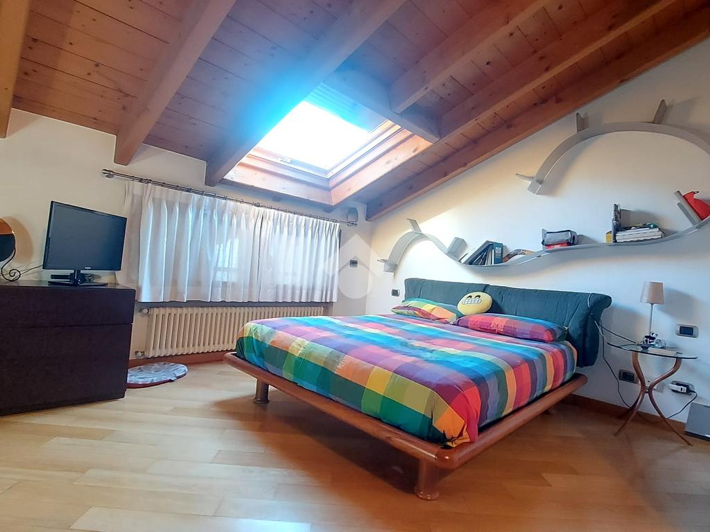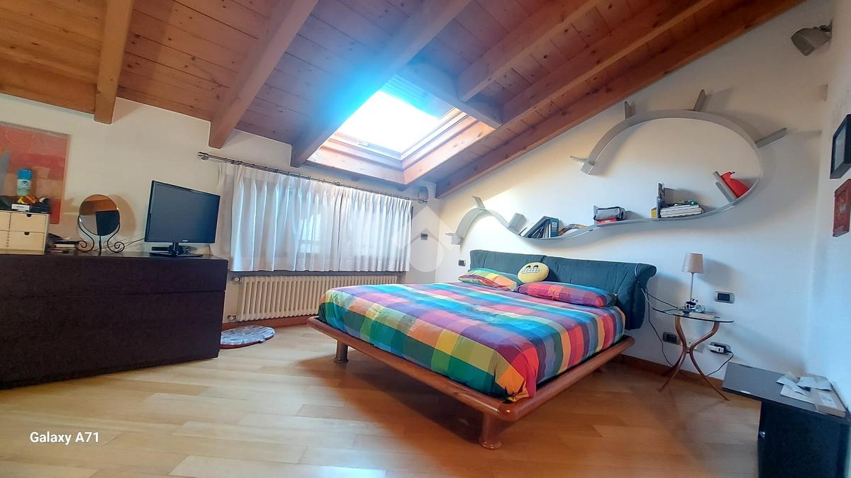 La zona notte comprende una camera matrimoniale dotata sia di finestra tradizionale che di lucernario, perfetta per godere della luce naturale durante tutto il giorno. Il bagno, ampio e ben rifinito, dispone di un comodo piatto doccia ed è organizzato in modo funzionale.