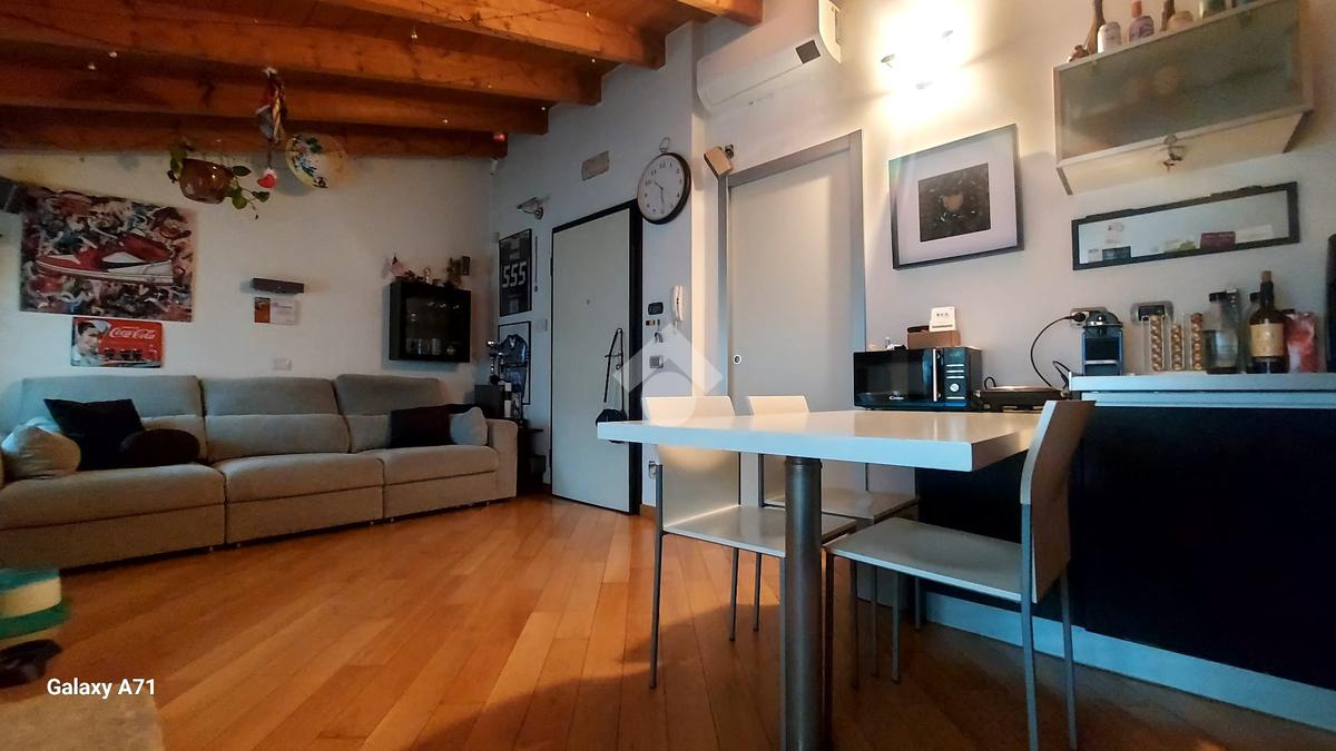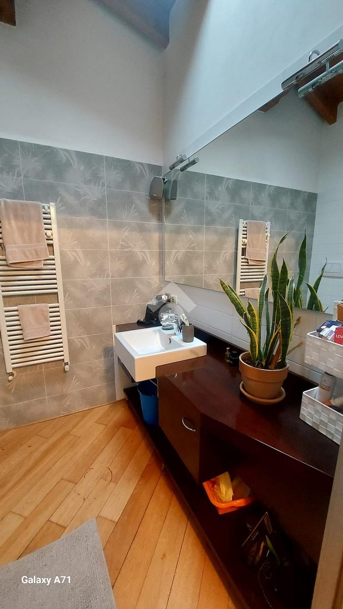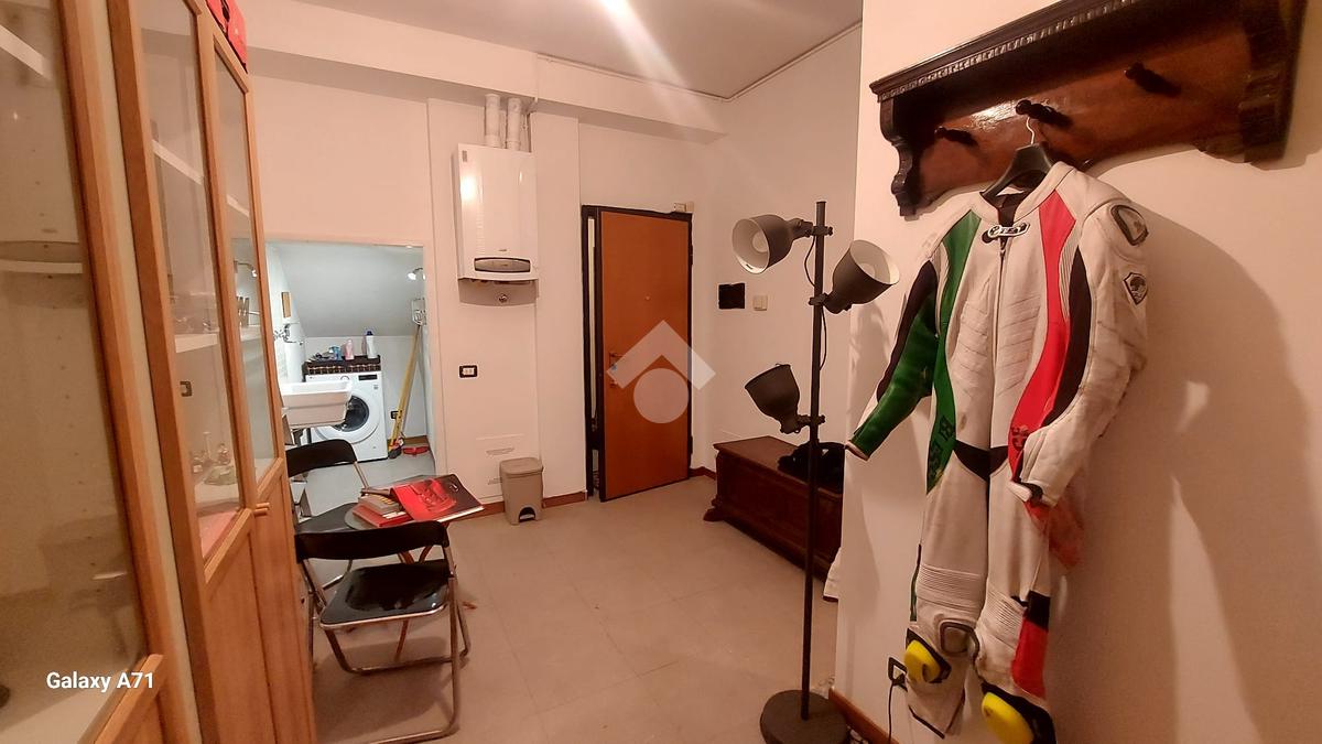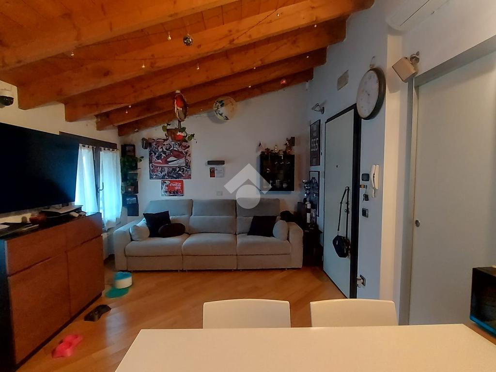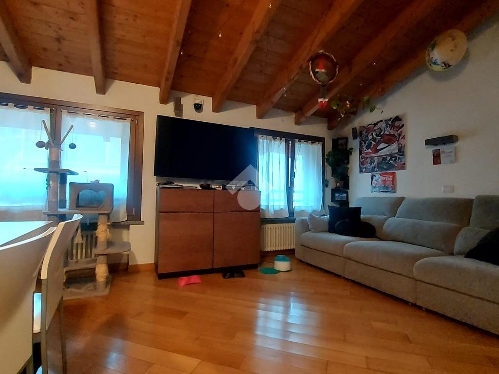 La soluzione è contraddistinta da una zona giorno ben distribuita, l'ambiente risulta molto armonioso in quanto tutto l'appartamento è contraddistinto da travi a vista; tramite il disimpegno di accede alla zona notte completa di bagno con box doccia e velux elettrico e di un'ampia camera matrimoniale, anch'essa completa di velux sul tetto e di due finestre, che, come nella zona giorno, rendono l'ambiente molto luminoso ed arieggiato.