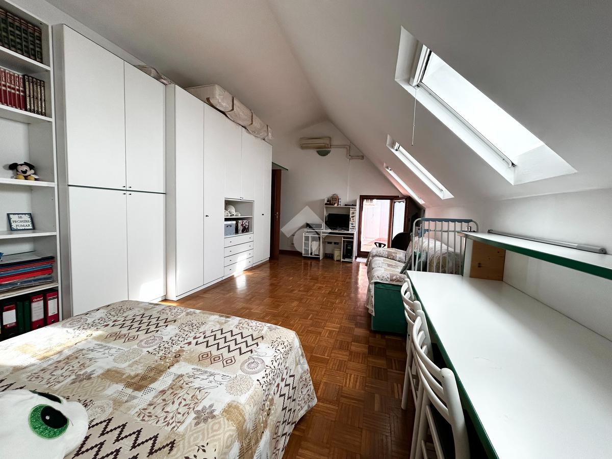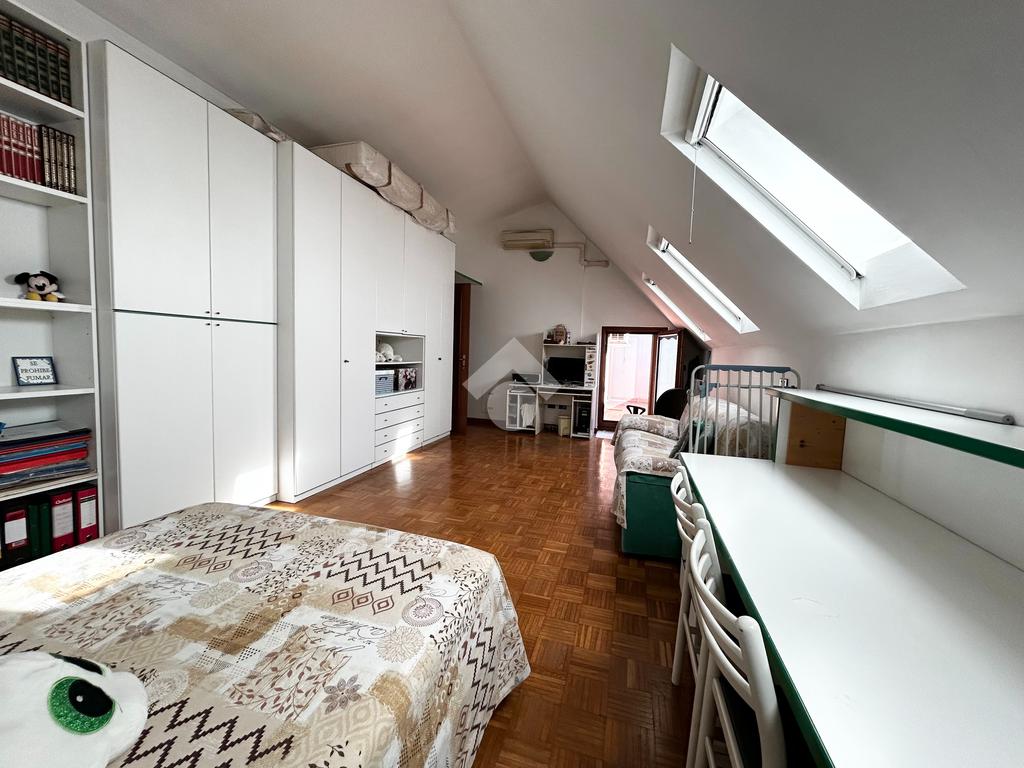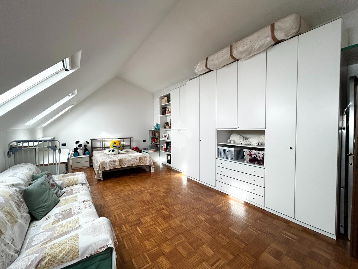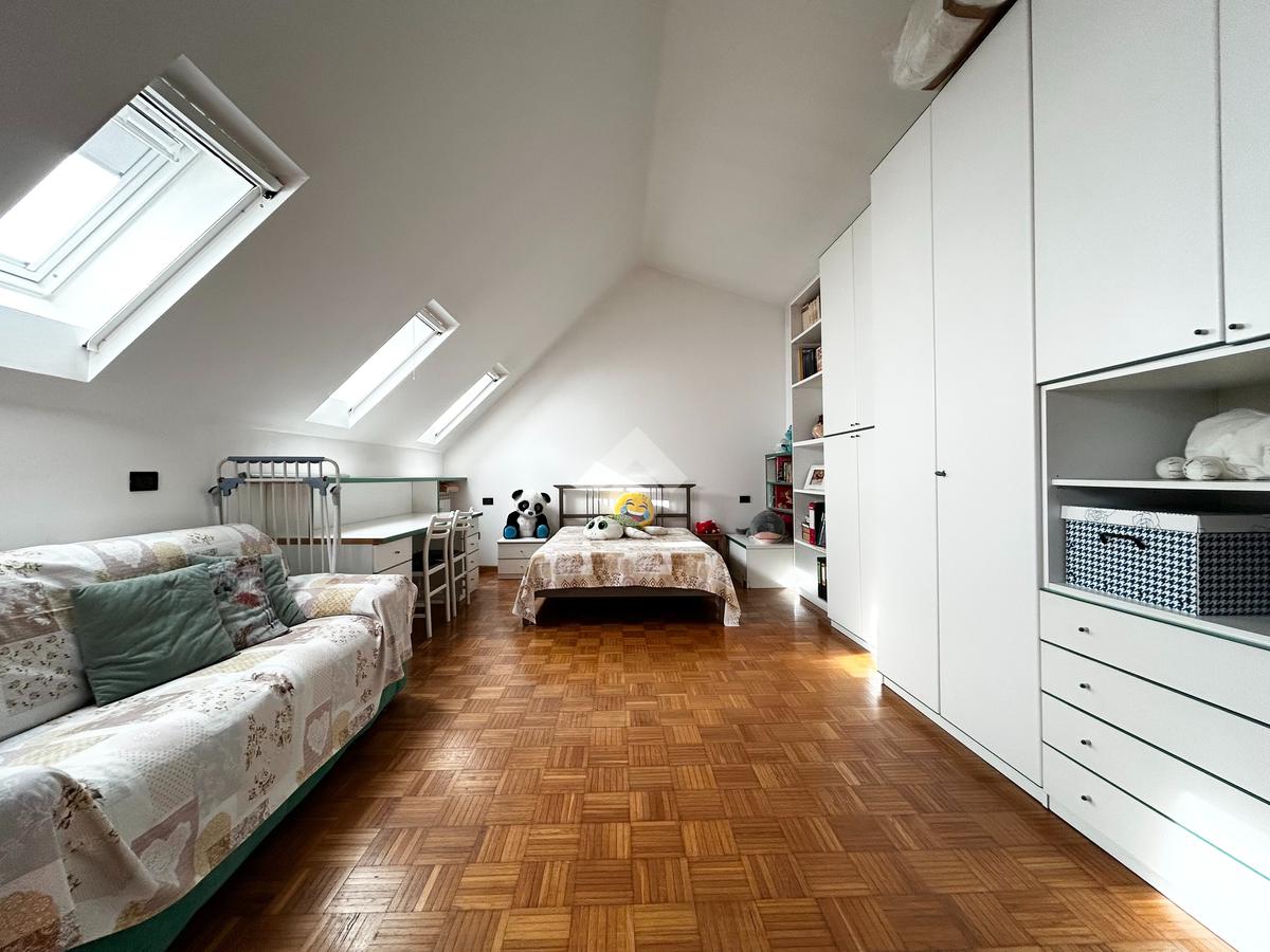 Il parquet presente in ogni ambiente dona calore ed eleganza all'intera abitazione, inoltre sono presenti tutti gli infissi nuovi in PVC con triplo vetro, velux nuovi nella mansarda, zanzariere e impianto di aria condizionata con pompa di calore.