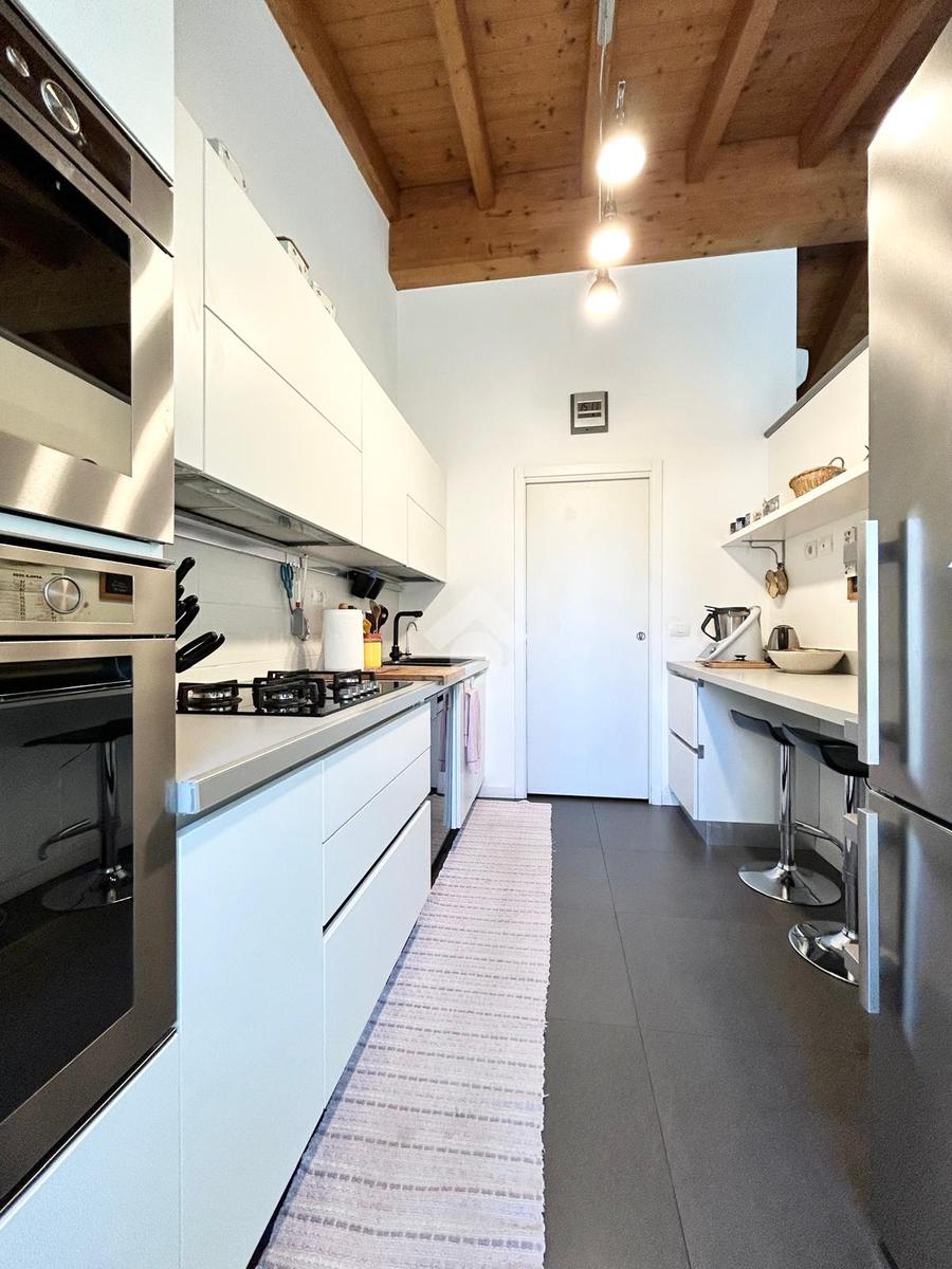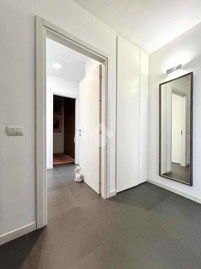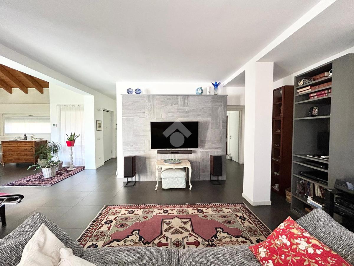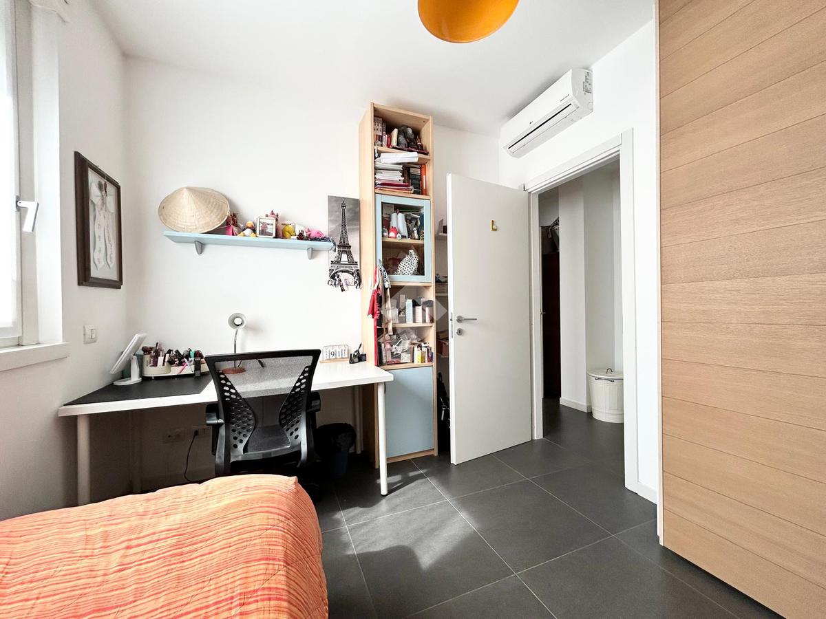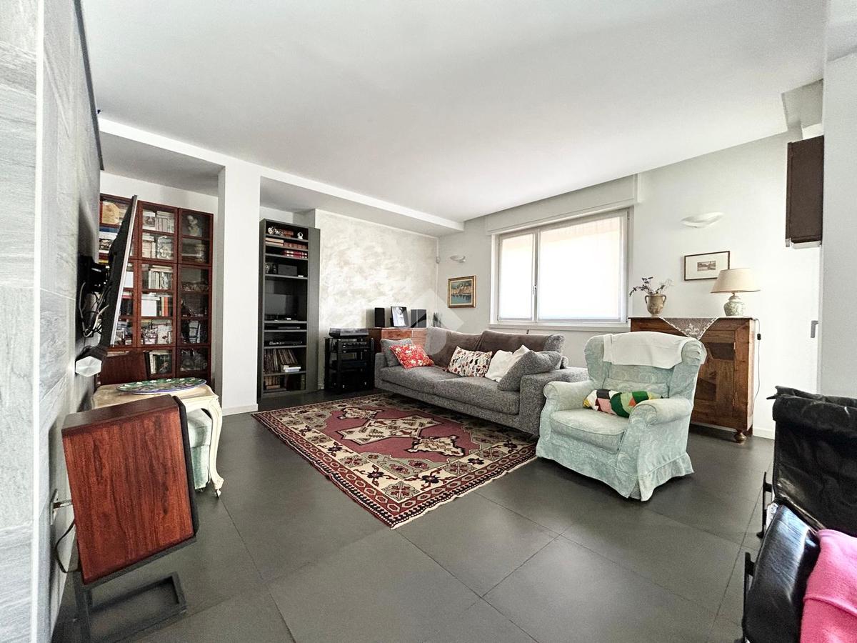 Al piano terra troviamo un ampio appartamento di quattro locali composto da doppio soggiorno luminoso, cucina abitabile, dispensa, doppi servizi e una funzionale cabina armadio nella zona notte. Dalla zona giono si accede direttamente al terrazzo e al giardino, creando una perfetta continuità tra interno ed esterno.