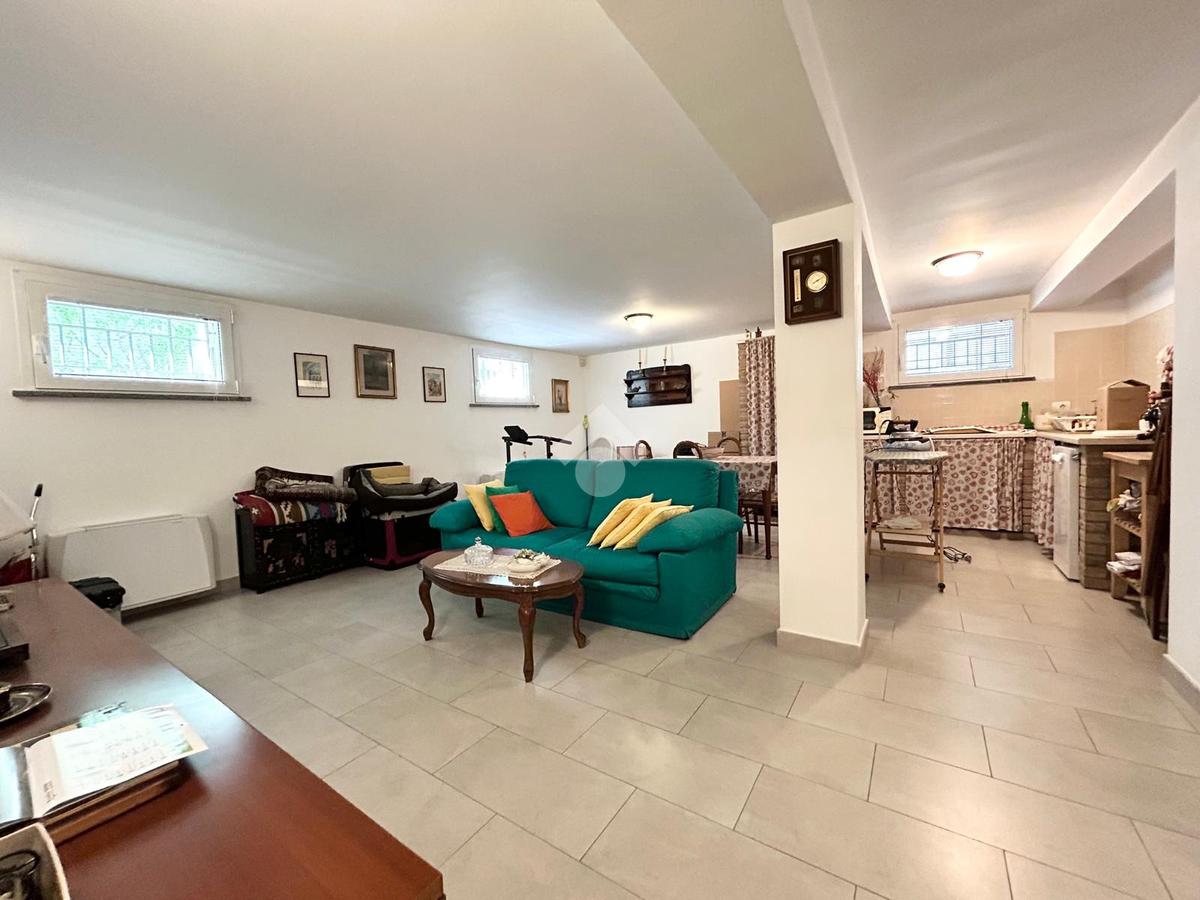 Il piano interrato ospita uno spazioso ambiente completamente ristrutturato, arricchito da una comoda lavanderia.